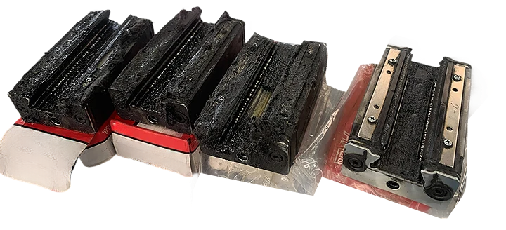 ガイドブロックが破損すると、機械操作ができなくなります。無理に稼働を続けた場合、潰れたガイドブロックがレール上を削りながら移動するため、レール一式交換となり高額になってしまうことも…!少しでも違和感を感じたら、交換がオススメです。